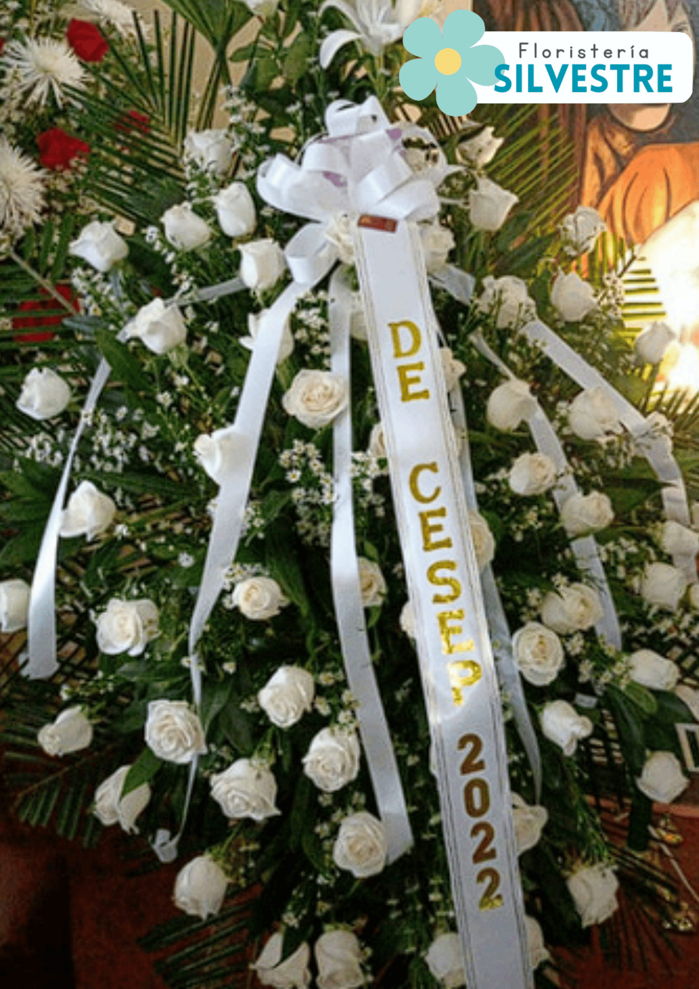 En momentos difíciles como la pérdida de un ser querido siempre queremos manifestar nuestras condolencias, este hermoso pedestal compuesto de rosas blancas, y follajes verdes es ideal para enviar a la funeraria o al lugar en el cual se están realizando las honras fúnebres.